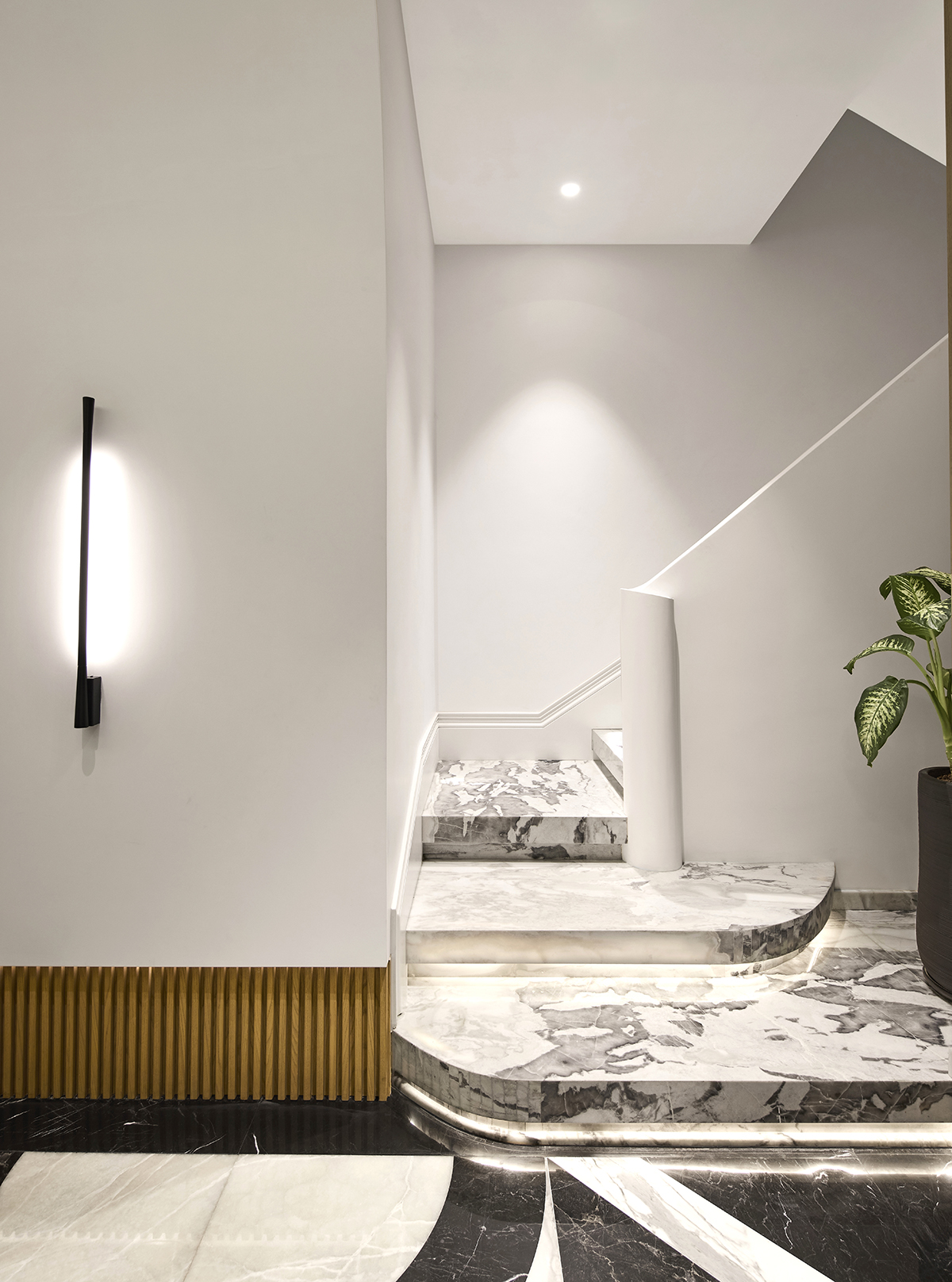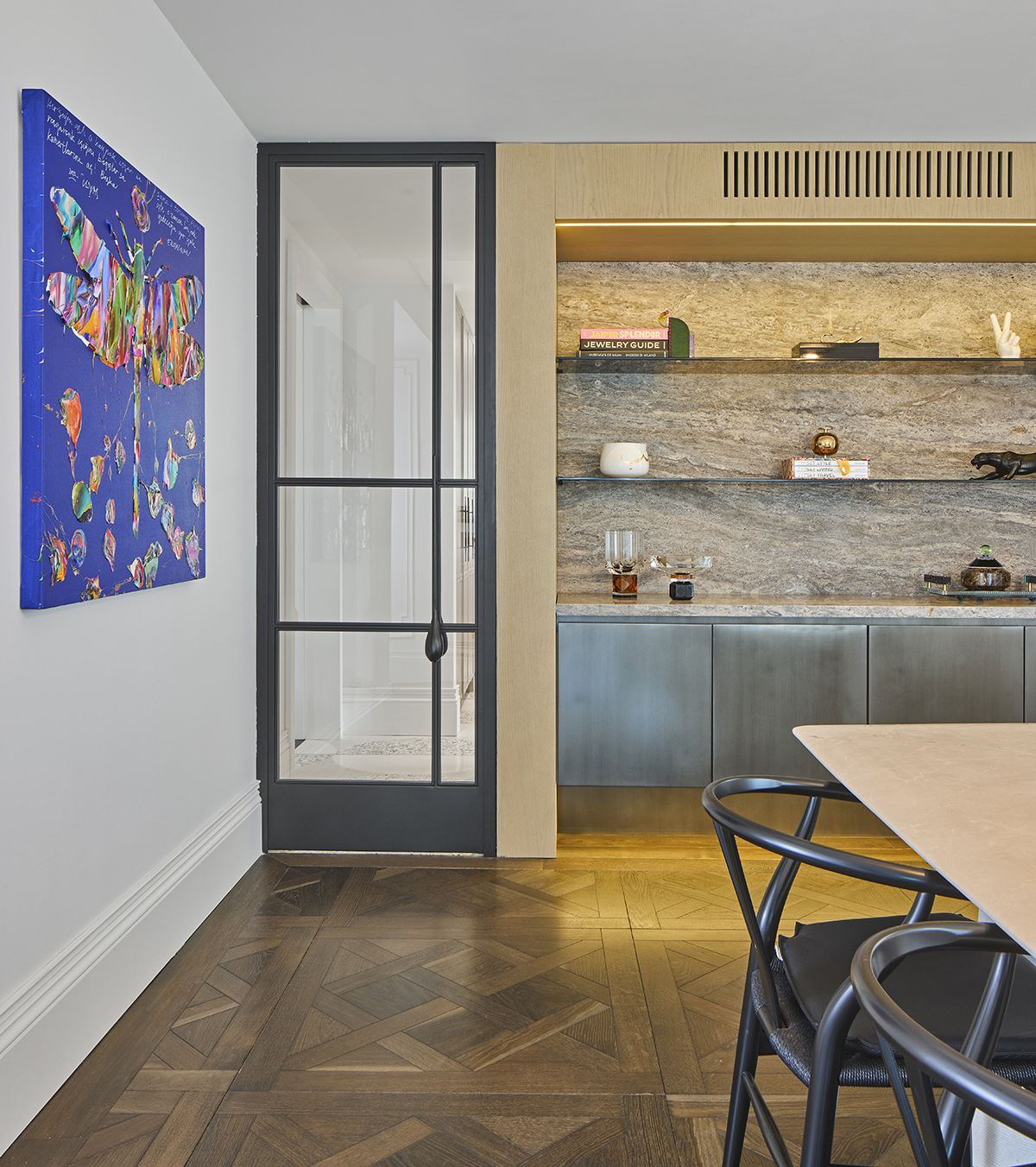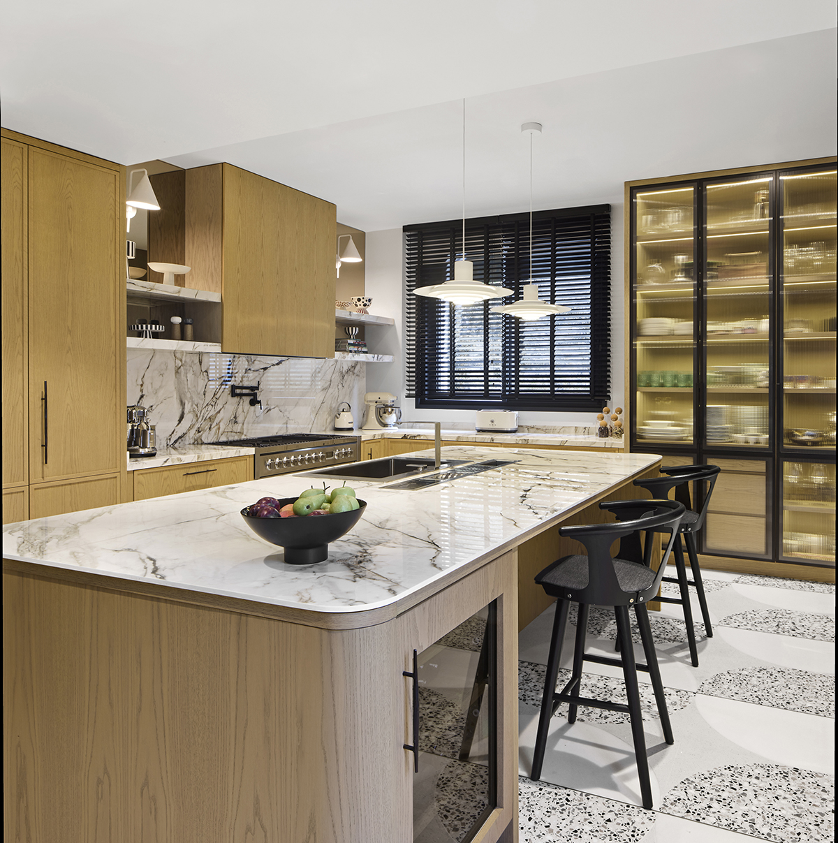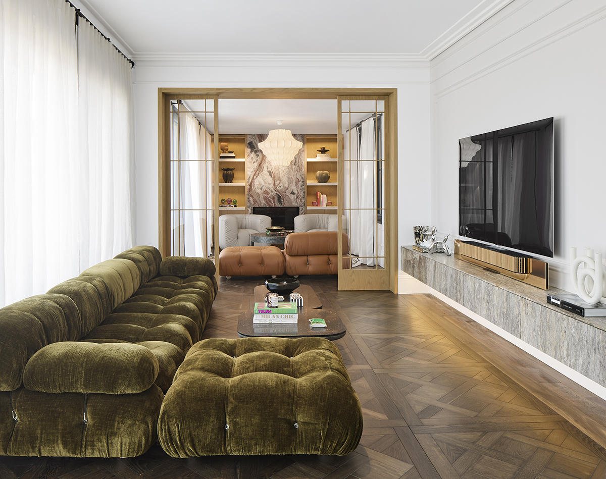 Layered lighting, custom made furniture, and carefully selected materials ensure both functionality and visual continuity throughout the home.