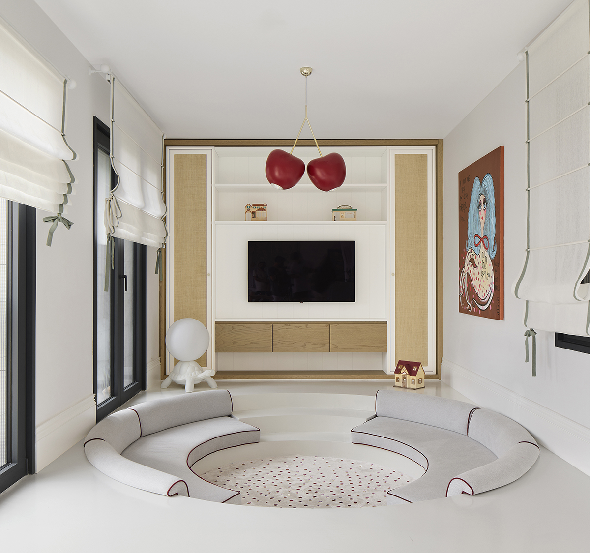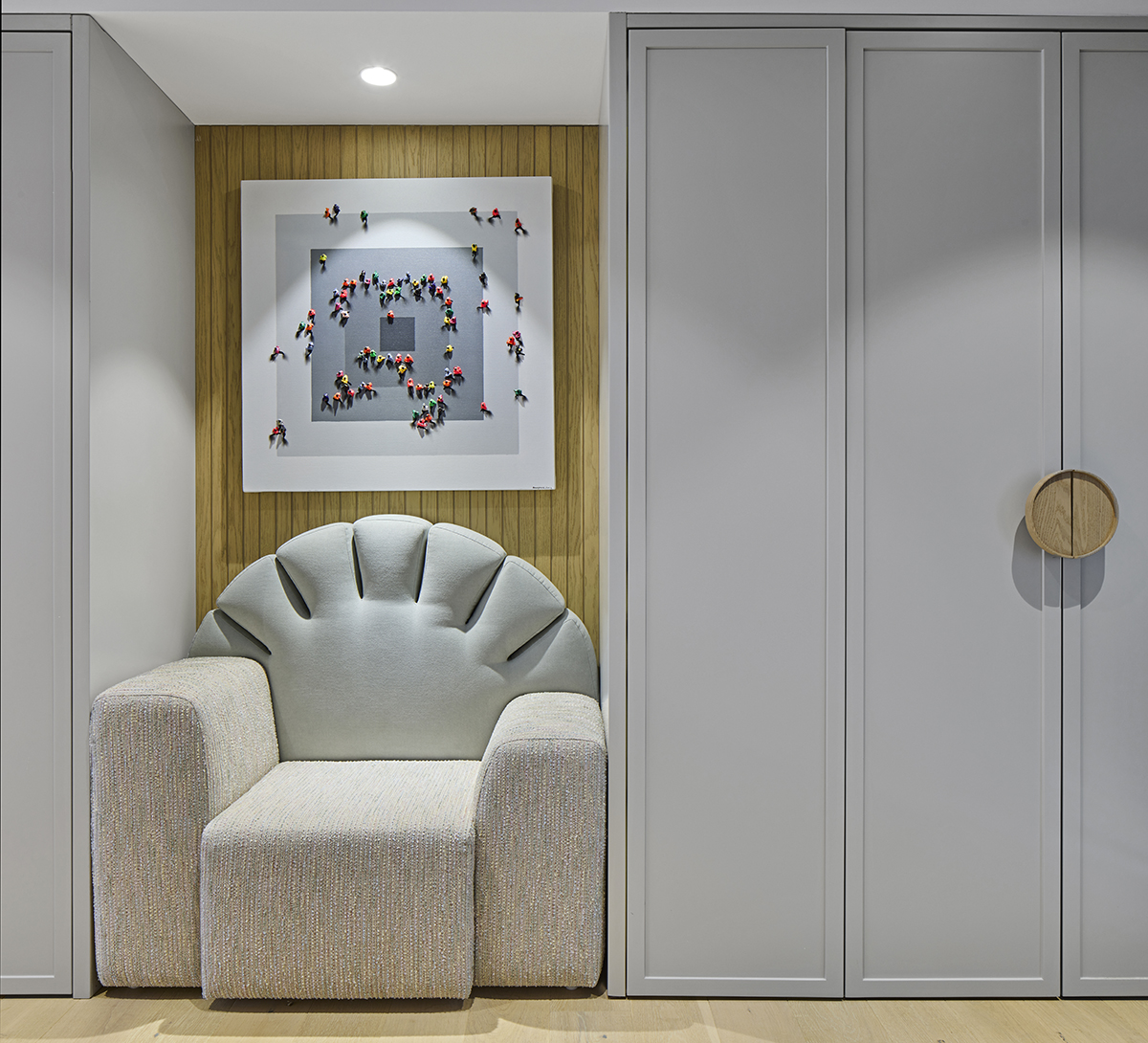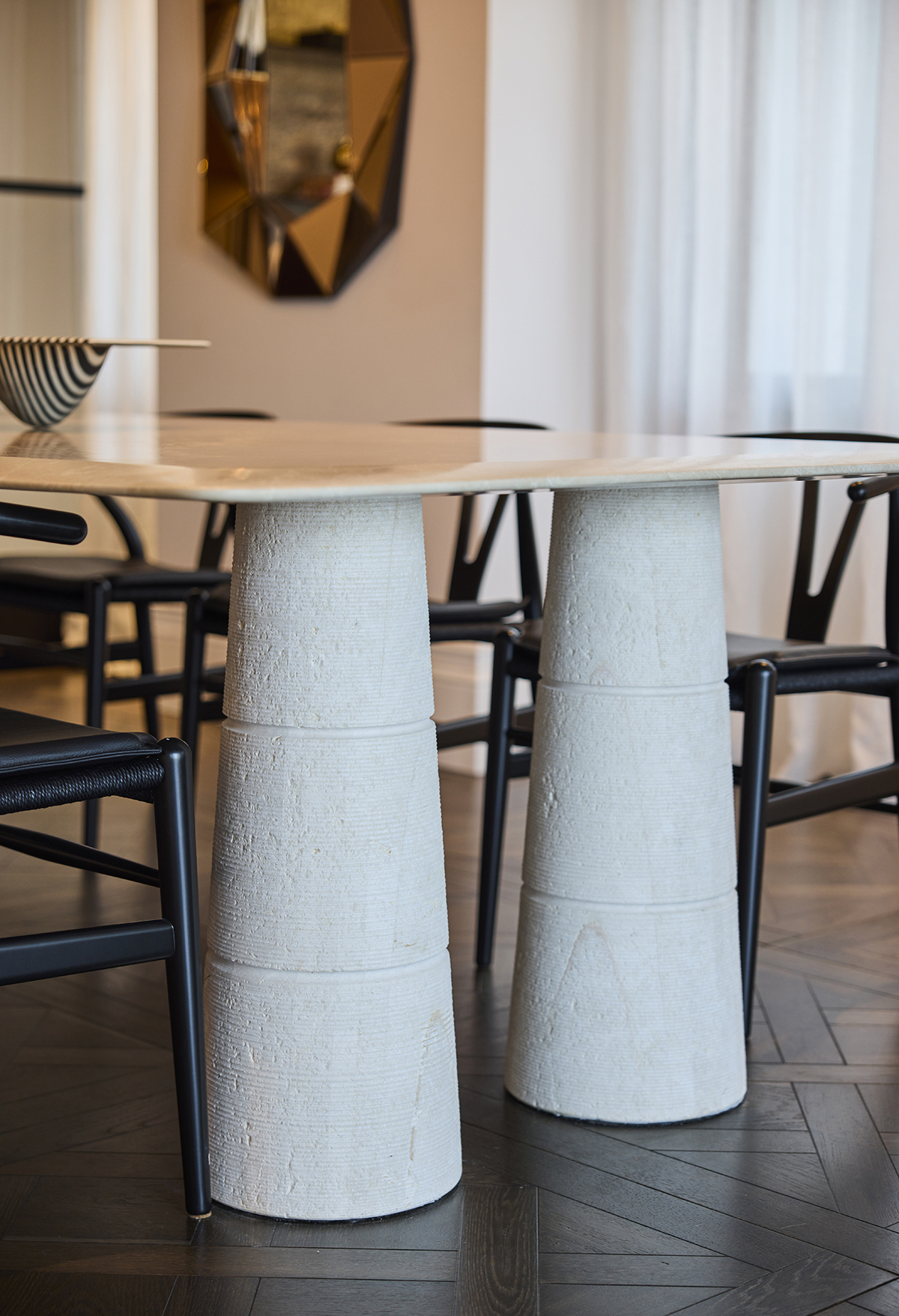 Layered lighting, custom made furniture, and carefully selected materials ensure both functionality and visual continuity throughout the home.