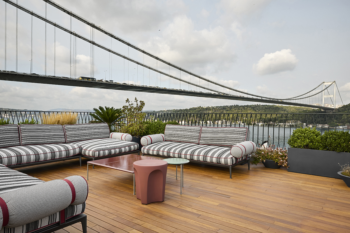 5 acre plot, the four-story mansion offers 670 m² of interior space and 200 m² of terrace areas, surrounded by a generous garden.