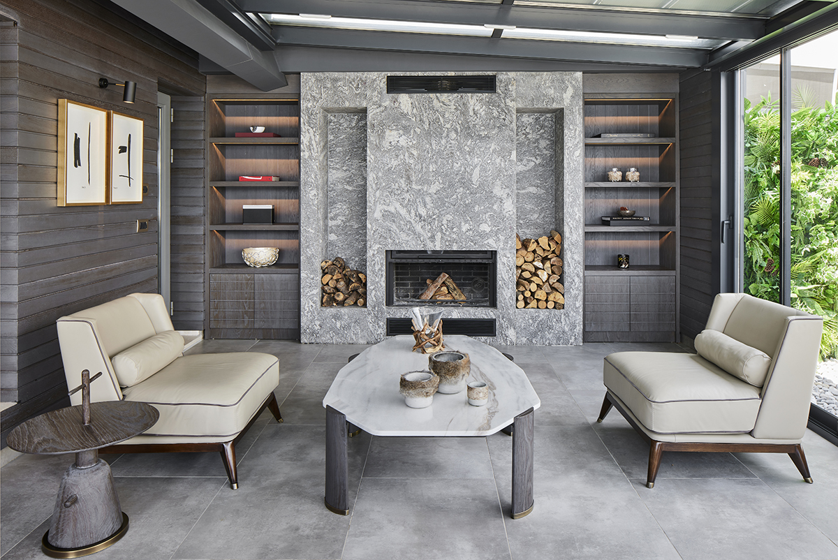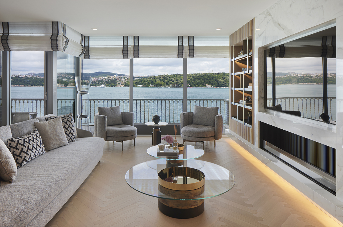 Part of the terrace was enclosed to create a winter garden with a fireplace, allowing the Bosphorus view to be enjoyed year round in a warm and intimate setting.