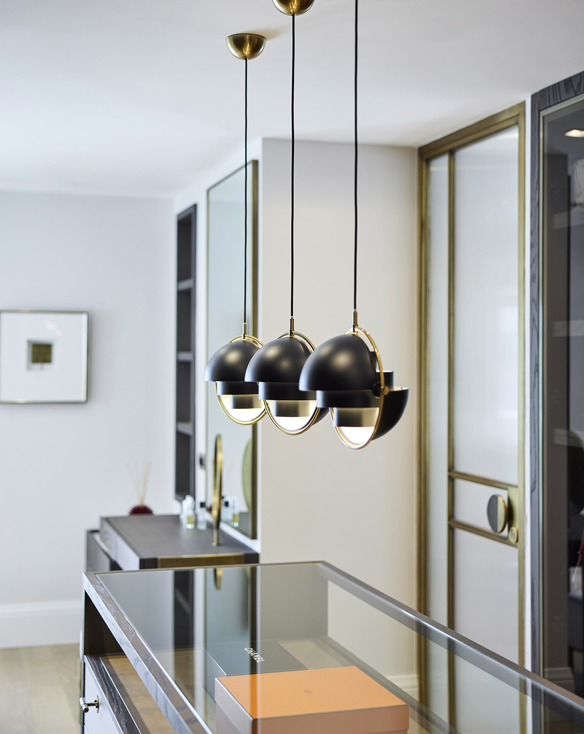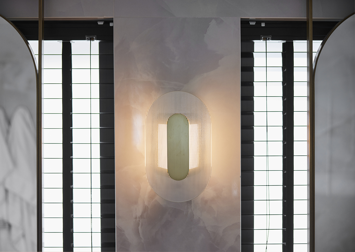 A sense of openness was achieved through the use of bronze framed transparent partitions, mirrored surfaces, and light-toned walls and flooring.