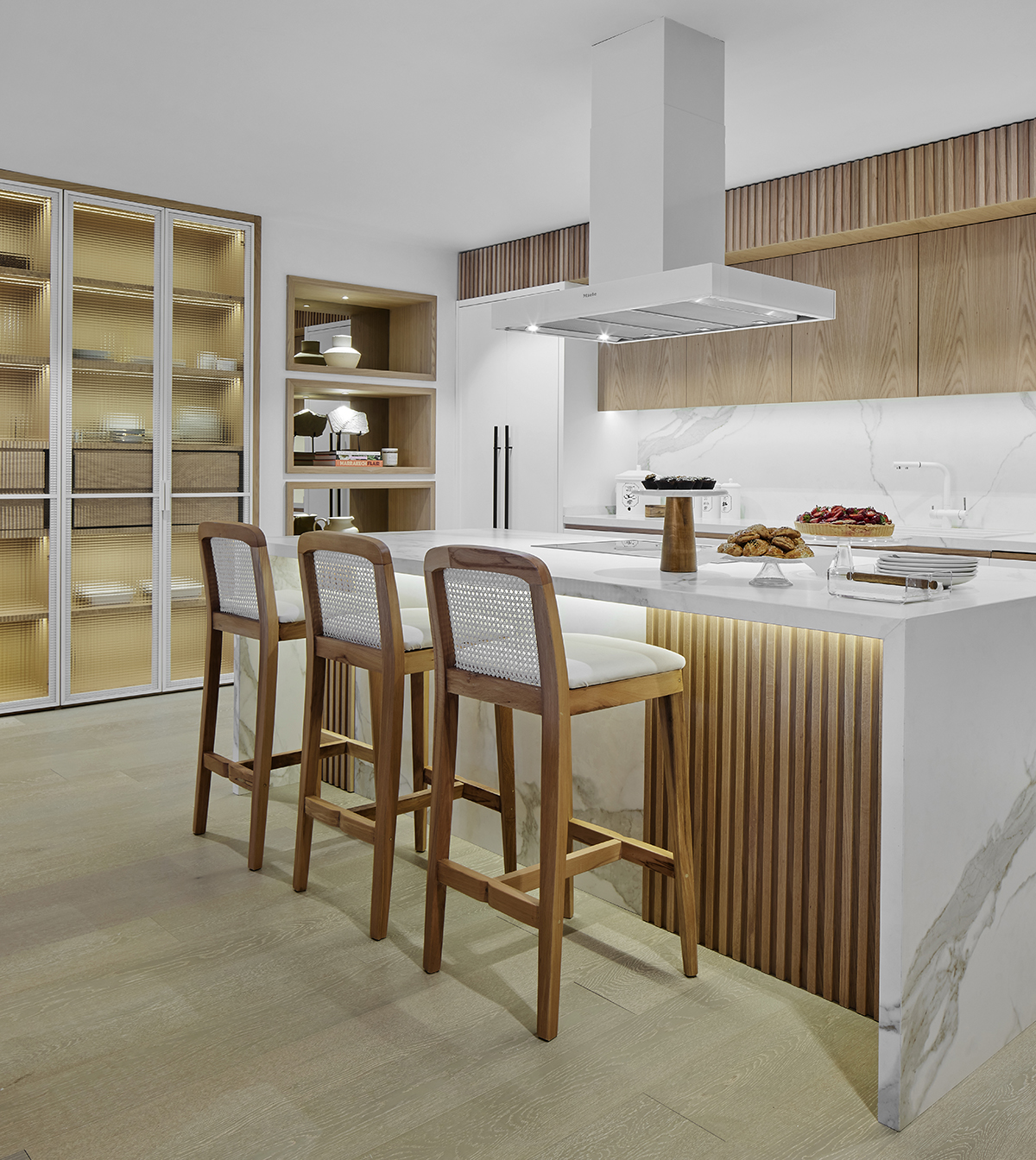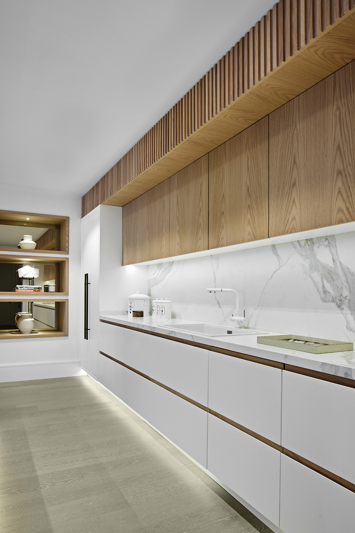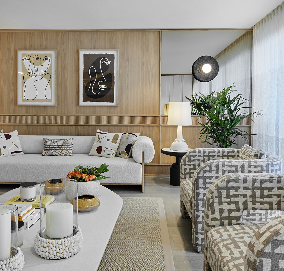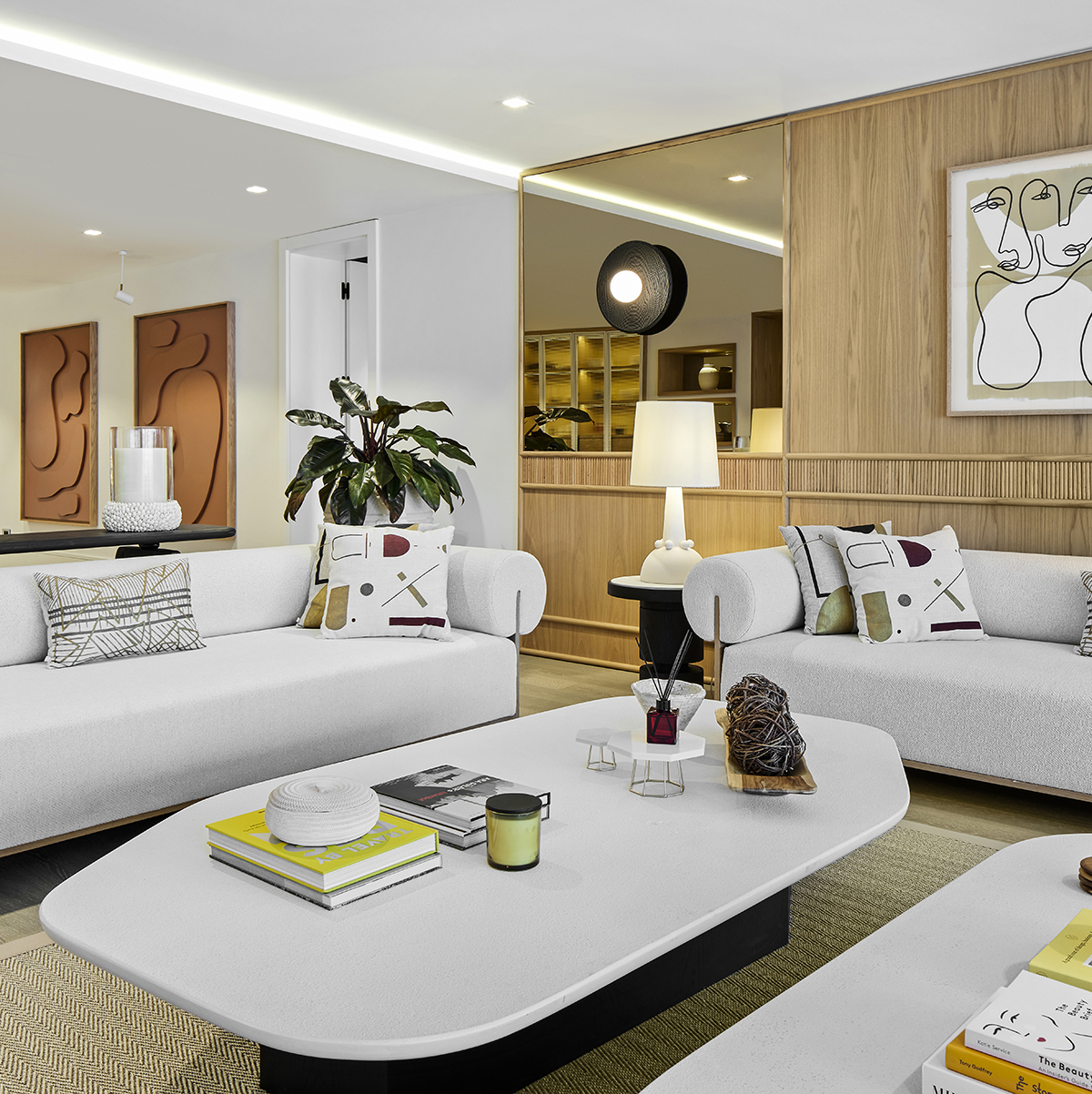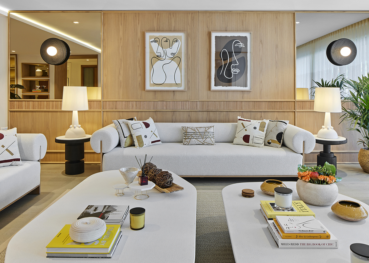 The layout includes a generous entrance hall, an open-plan living area with kitchen, a master suite with en-suite bathroom, three guest bedrooms, additional bathrooms, laundry and storage spaces, as well as a separate staff room with its own entrance.