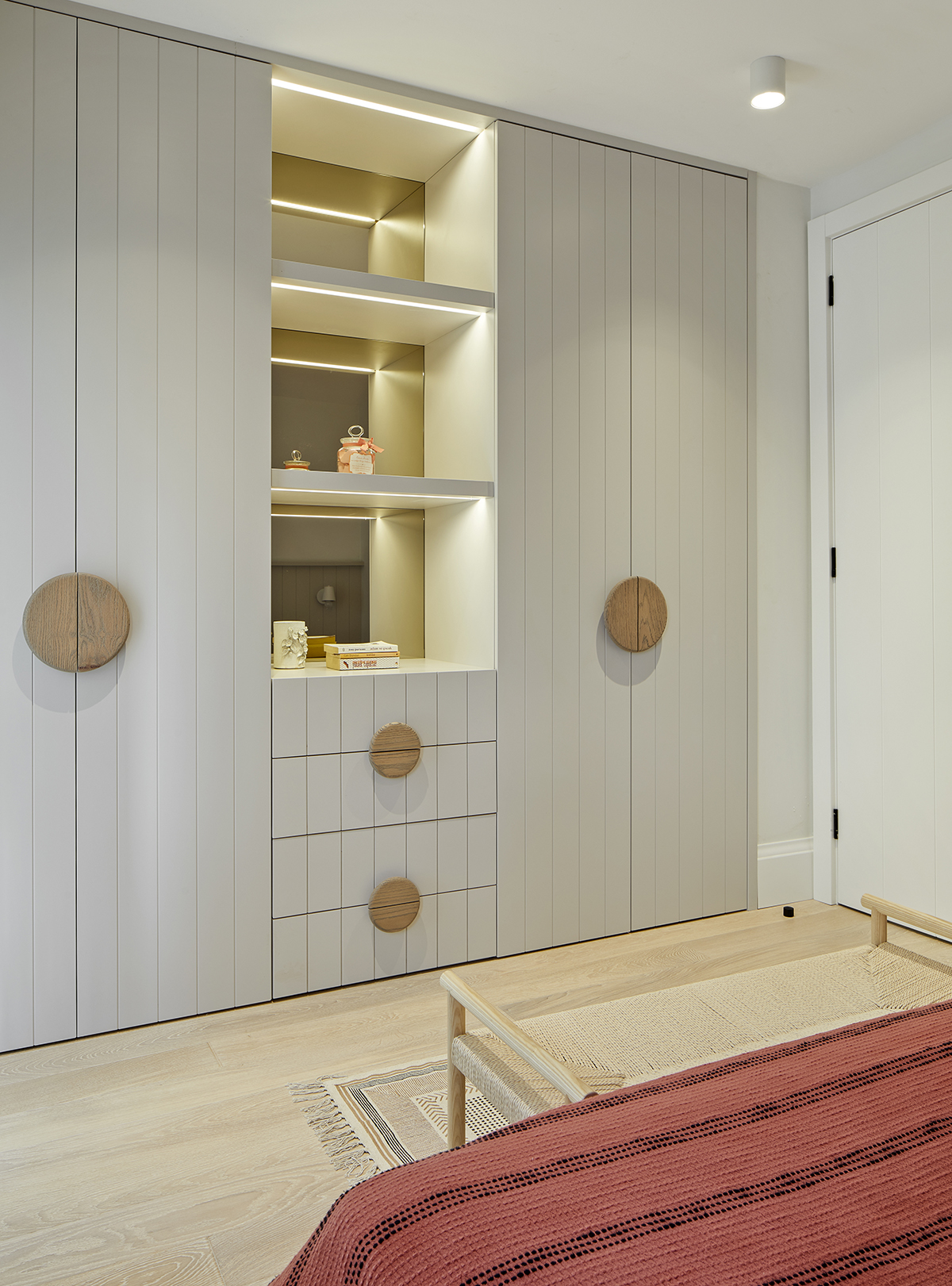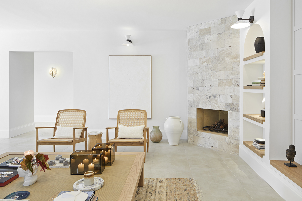 Natural materials, soft textiles, and subtle lighting choices support a relaxed atmosphere throughout the house.