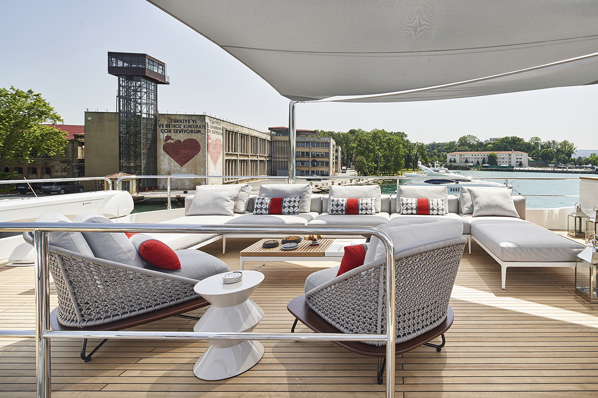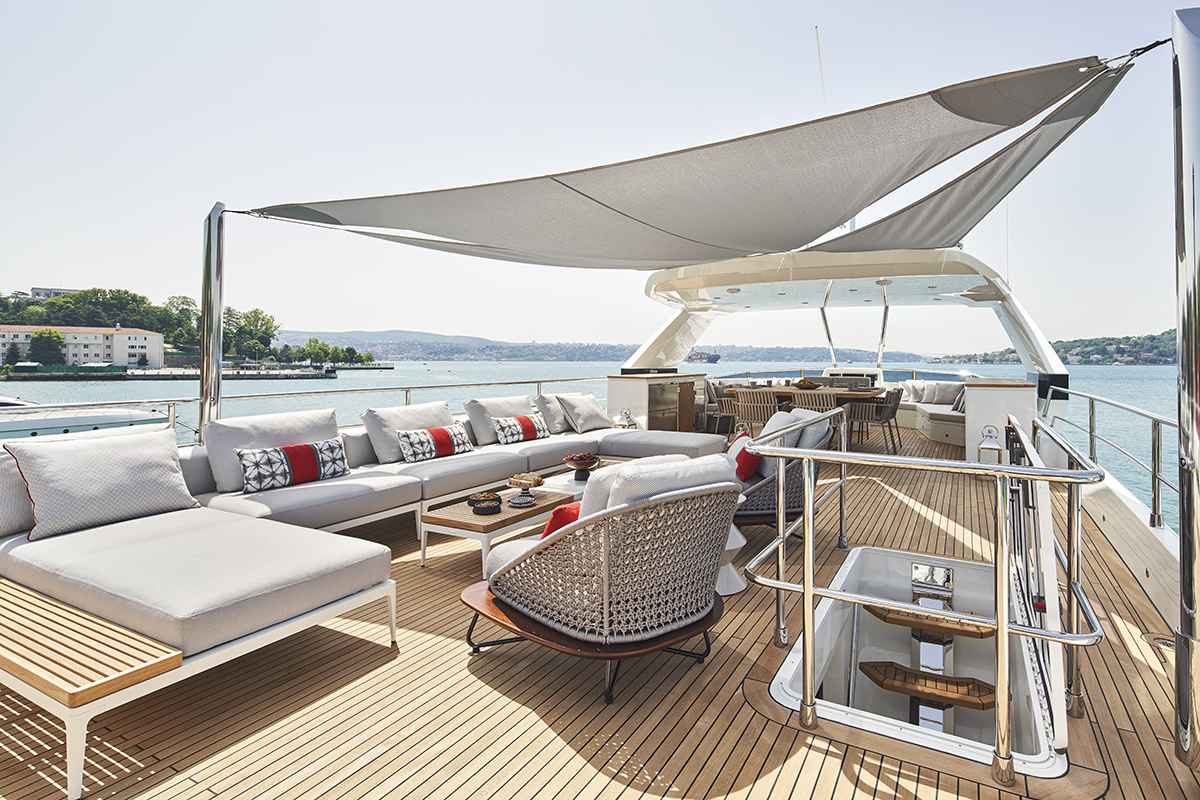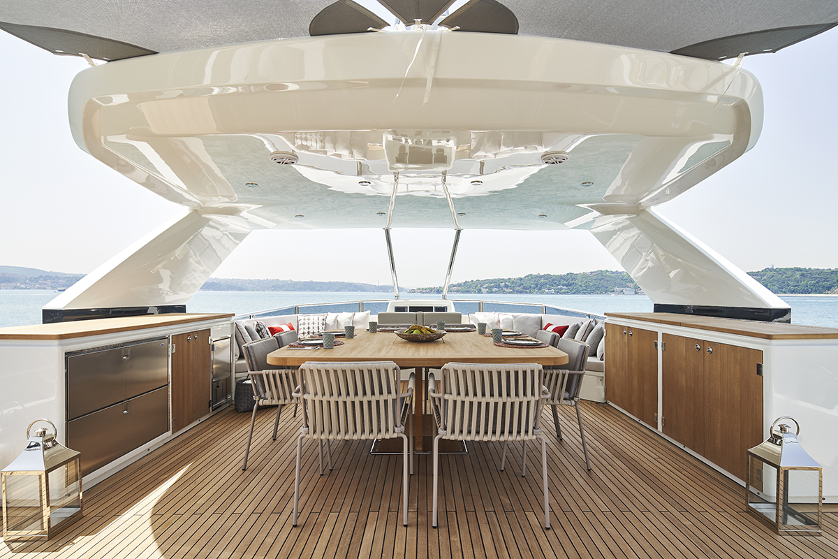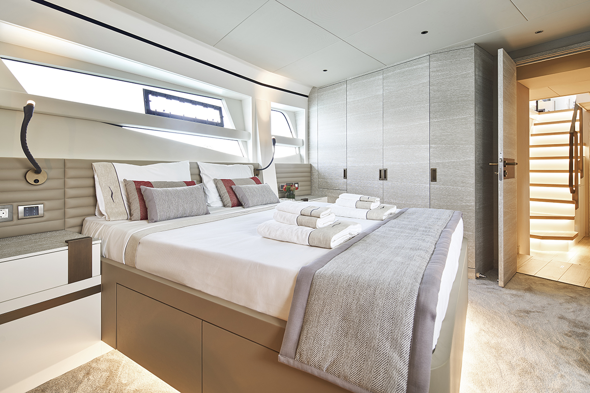 The Numarine 26XP offers two guest cabins and two crew cabins within approximately 350 square meters of thoughtfully designed living space.