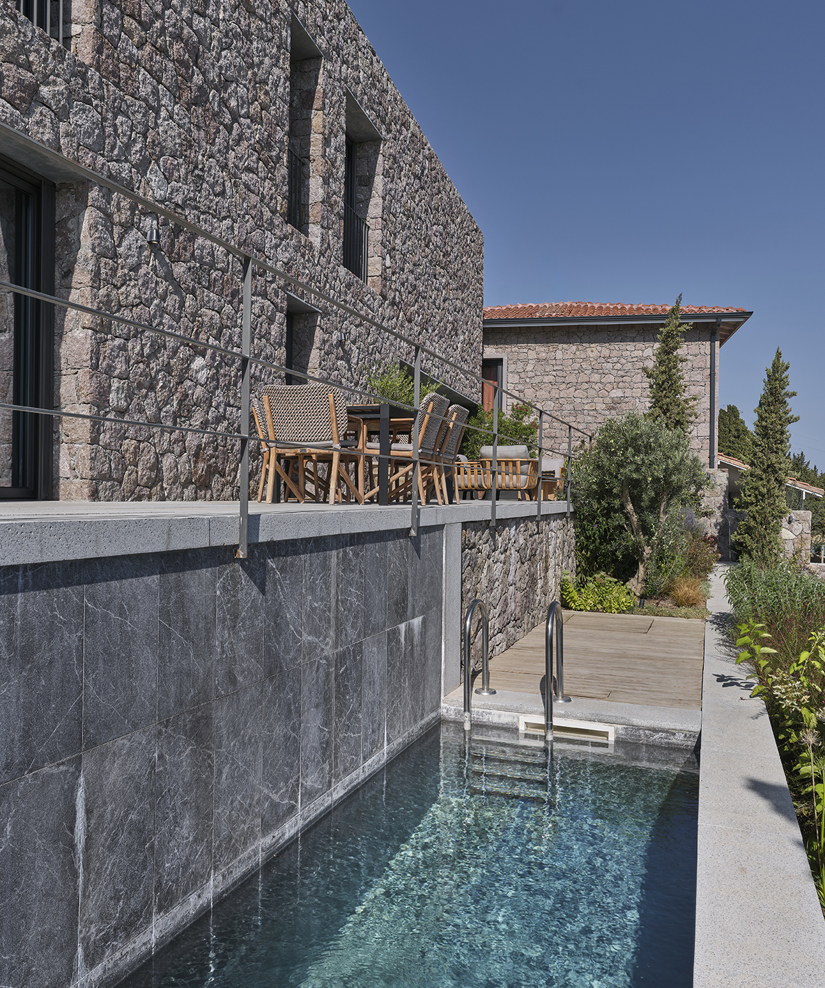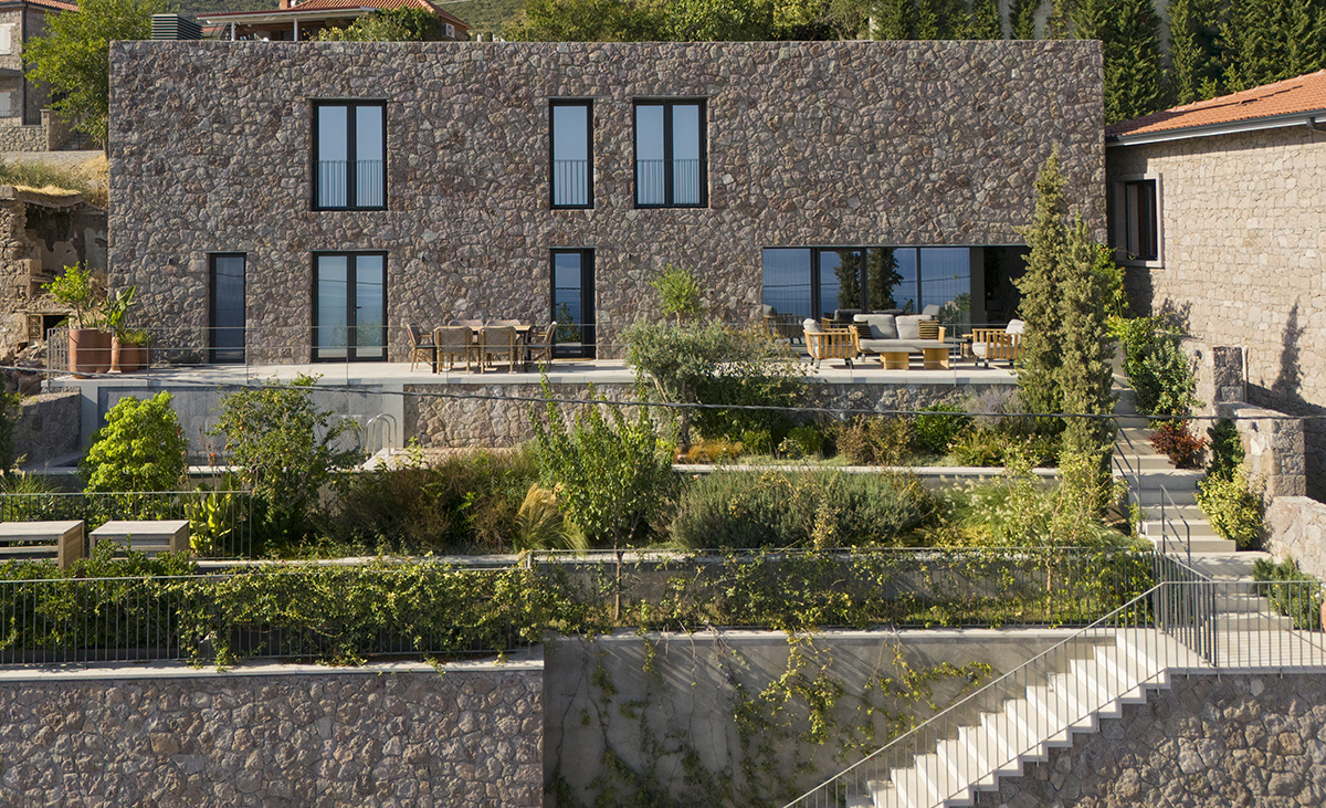 The 250 m² interior, supported by 220 m² of terraces and landscaped areas, was planned holistically, with architecture and interior design developing in parallel.