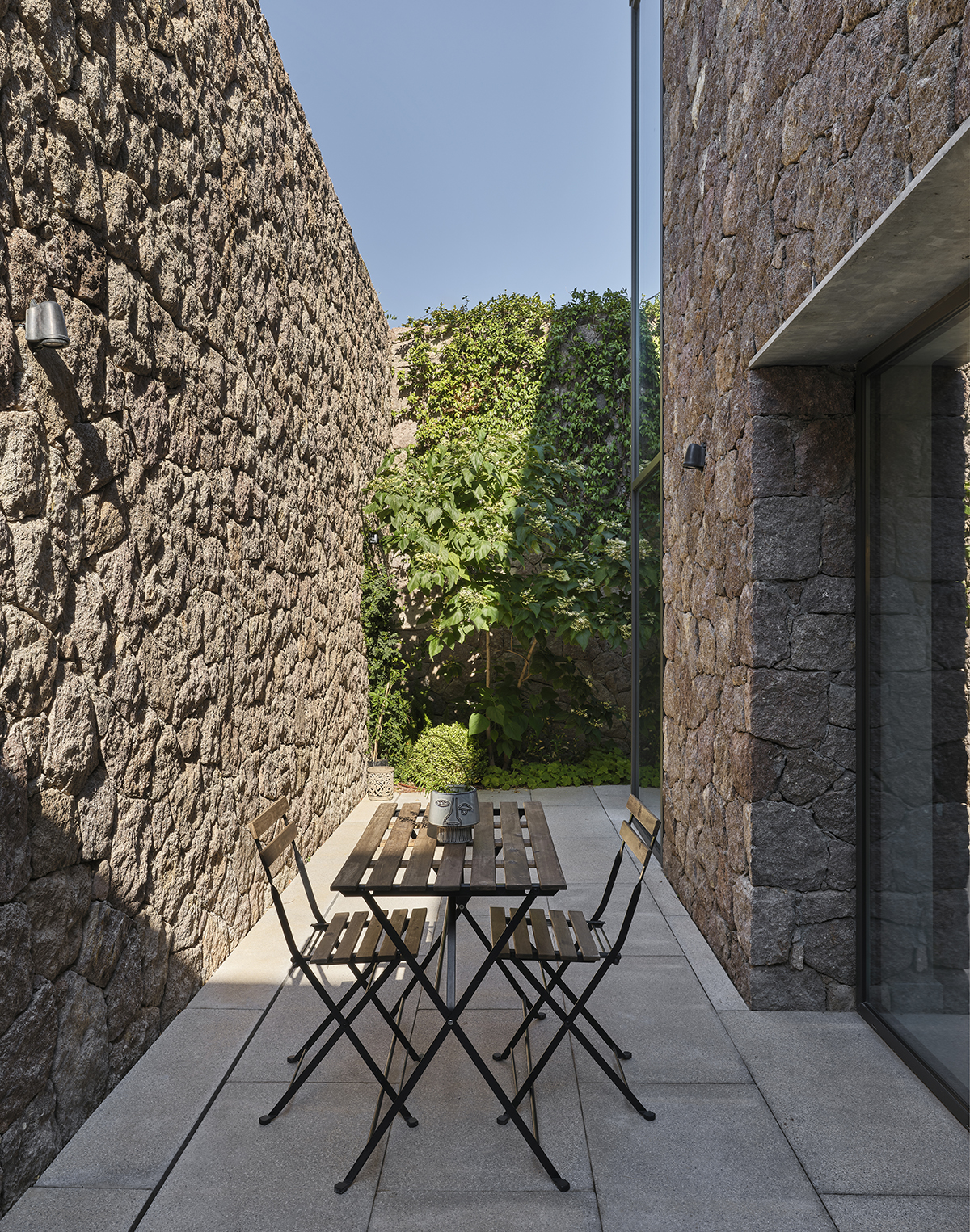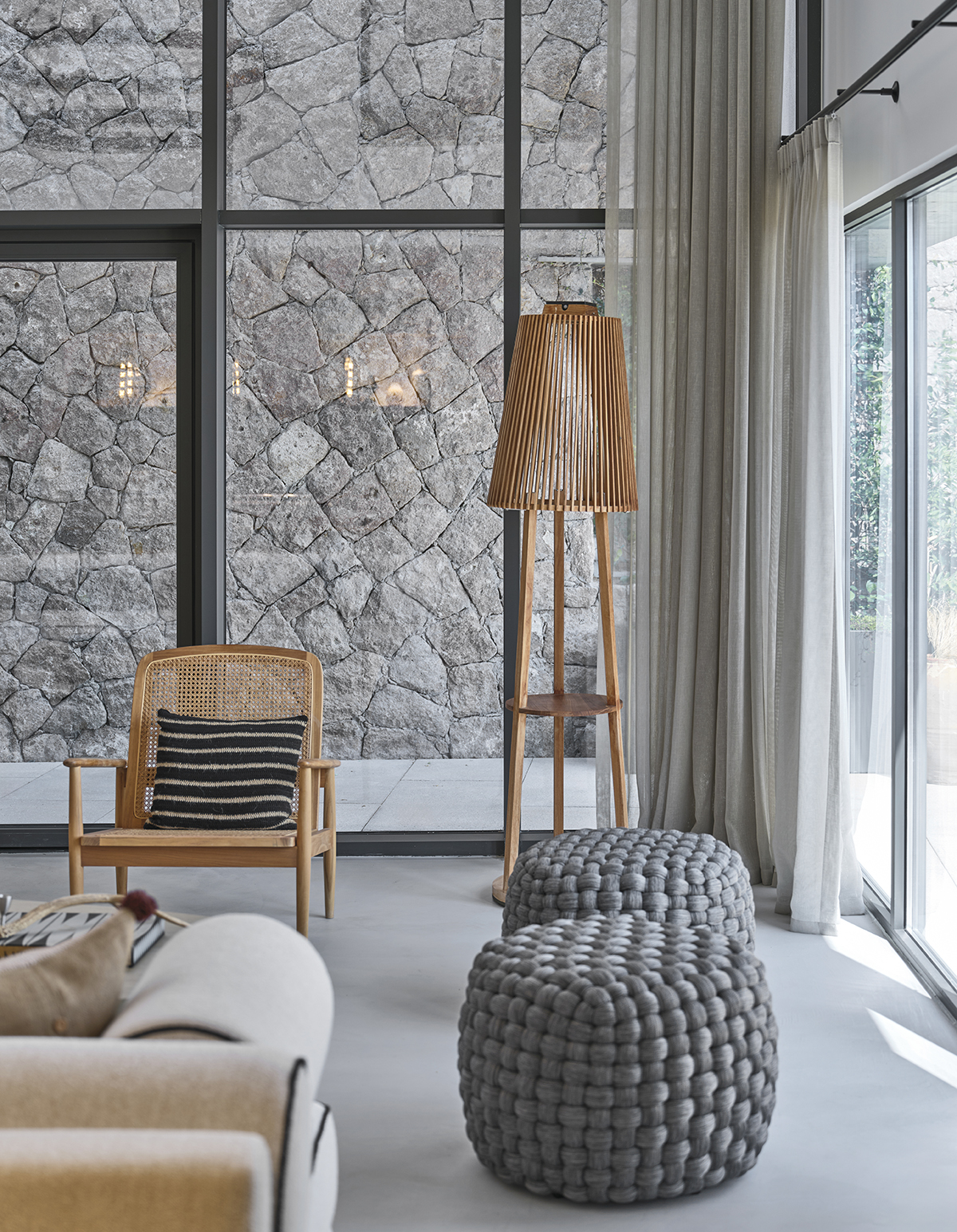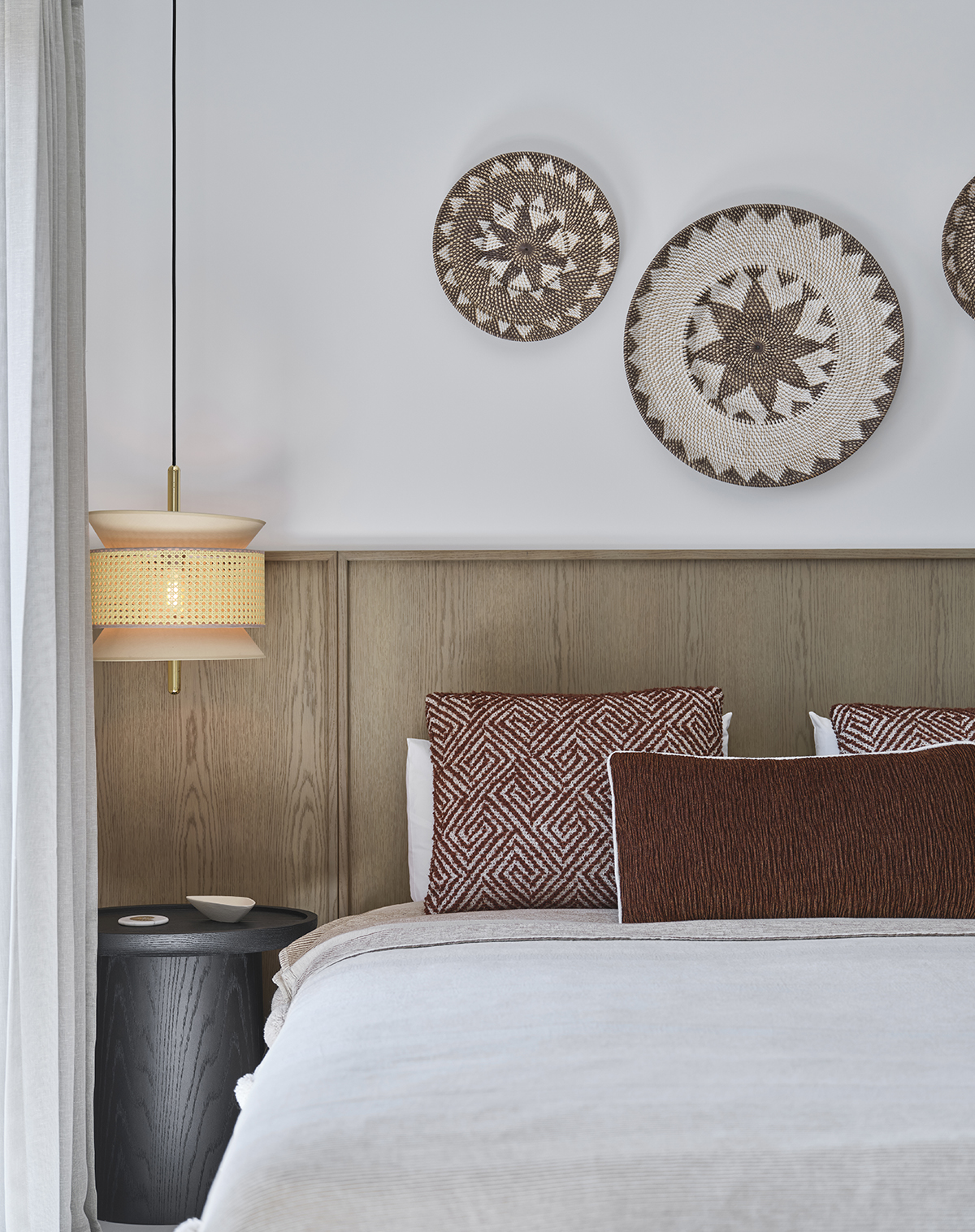 Natural textiles, patterned ceramics in the bathrooms, and climate-responsive landscaping further strengthen the home’s quiet, timeless relationship with its setting.