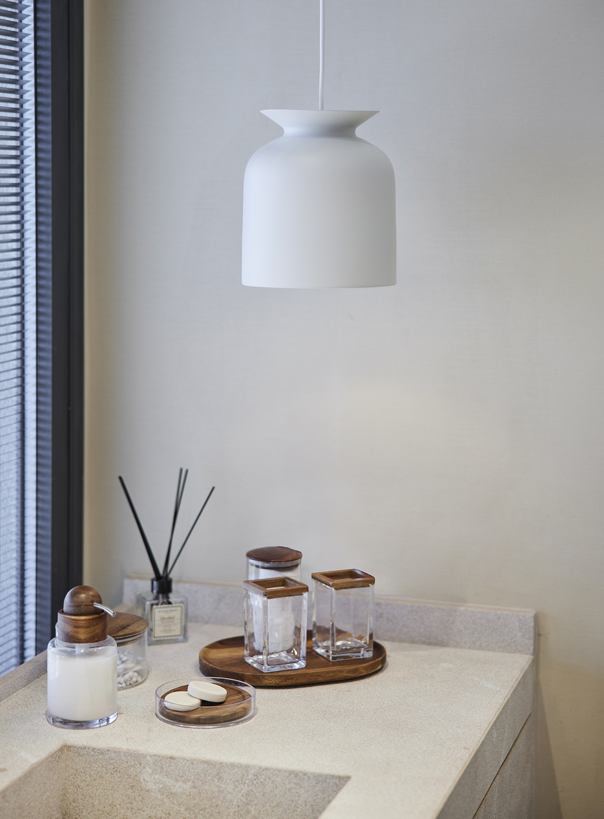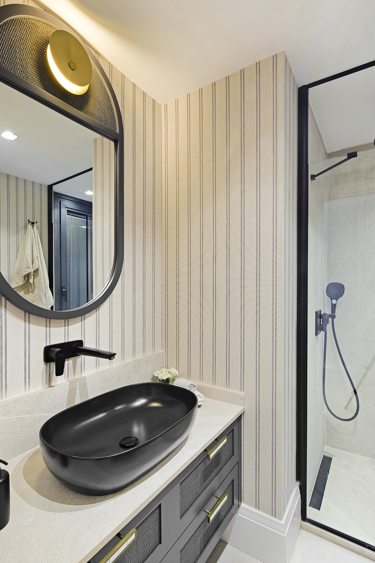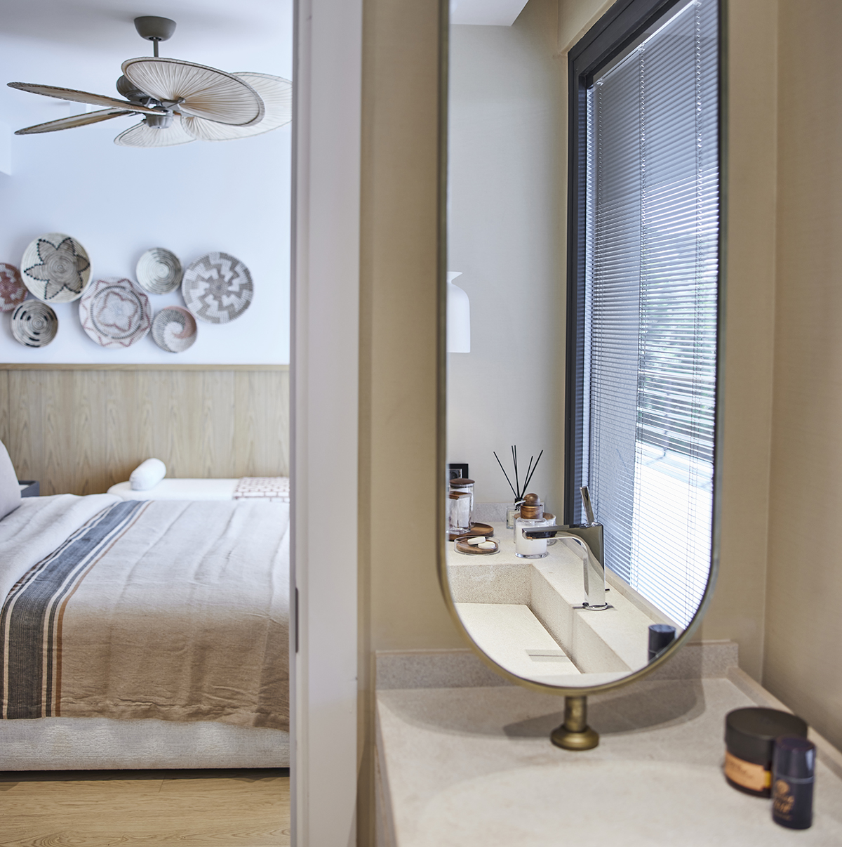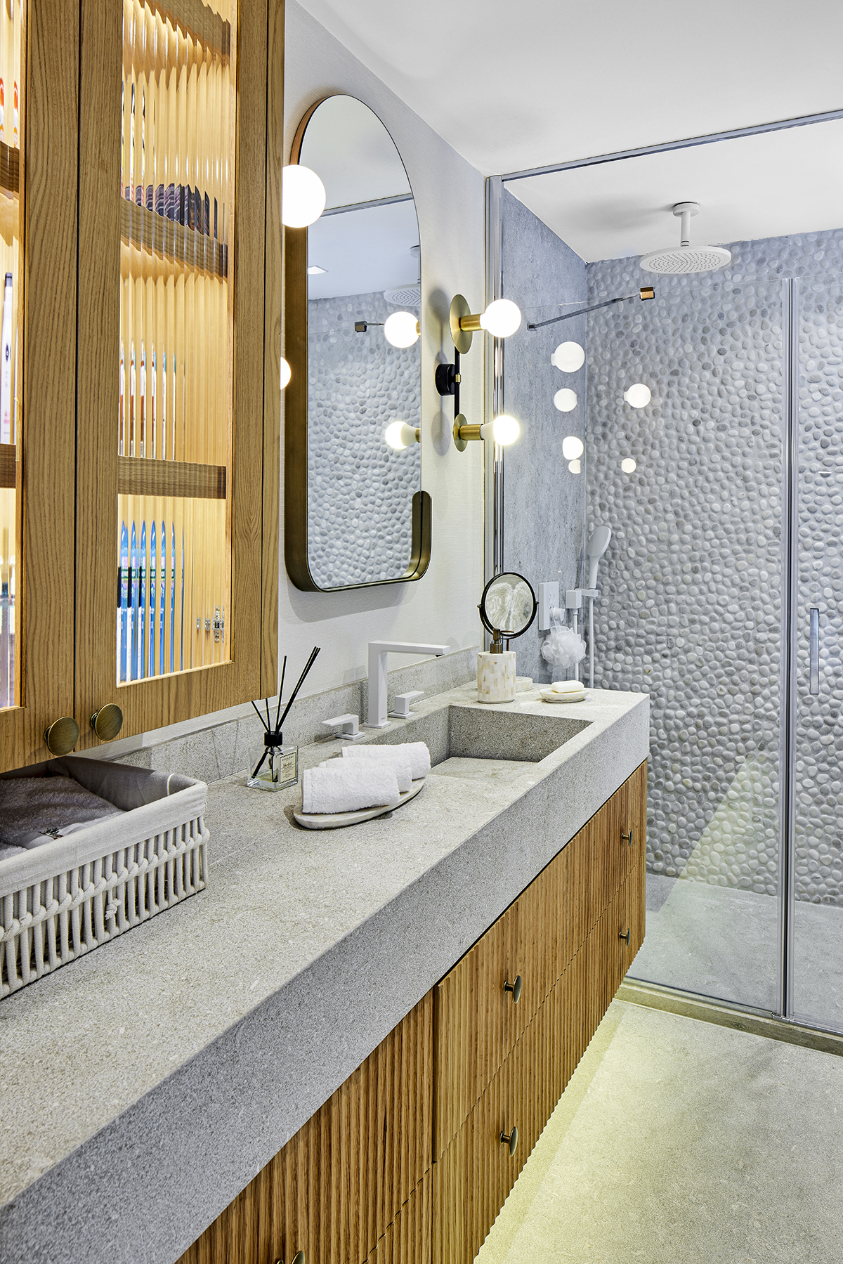 Lighting was kept understated, combining surface mounted spotlights, pendants, ceiling fans, and concealed LED details.