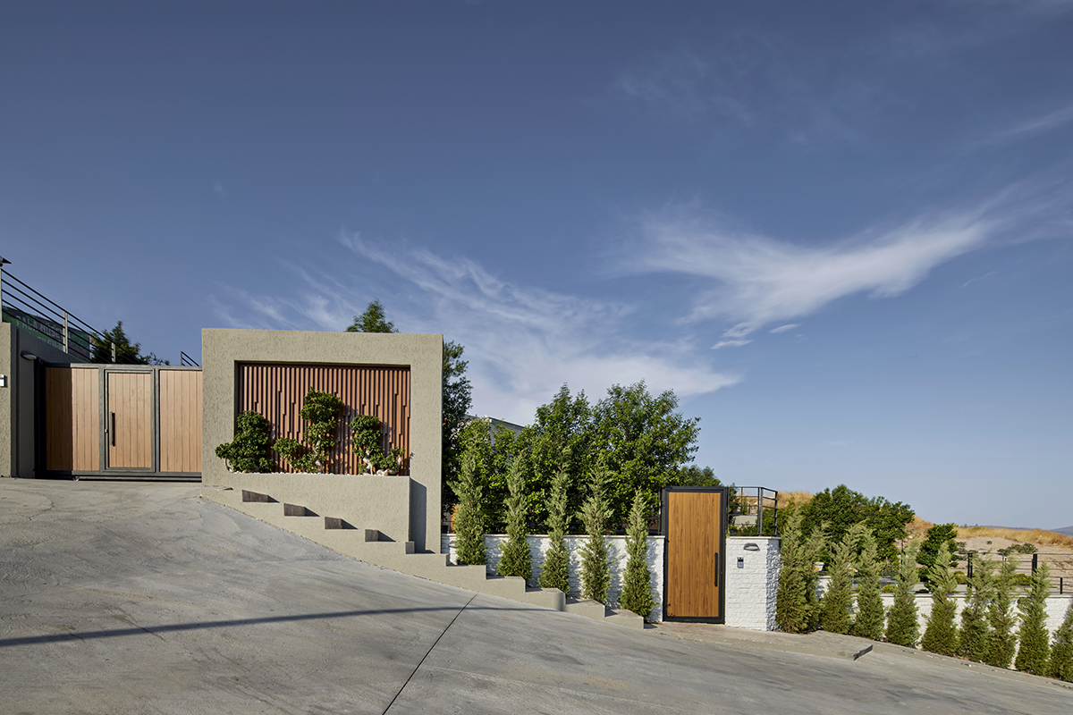 The contemporary home consists of two parts, a 245 m² main residence on the upper level and a 55 m² guesthouse accessed from the pool terrace below.