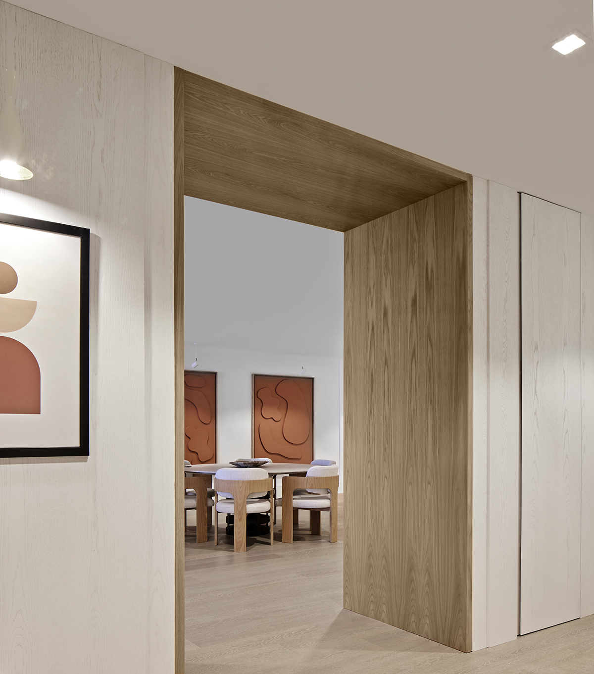The layout includes a generous entrance hall, an open-plan living area with kitchen, a master suite with en-suite bathroom, three guest bedrooms, additional bathrooms, laundry and storage spaces, as well as a separate staff room with its own entrance.