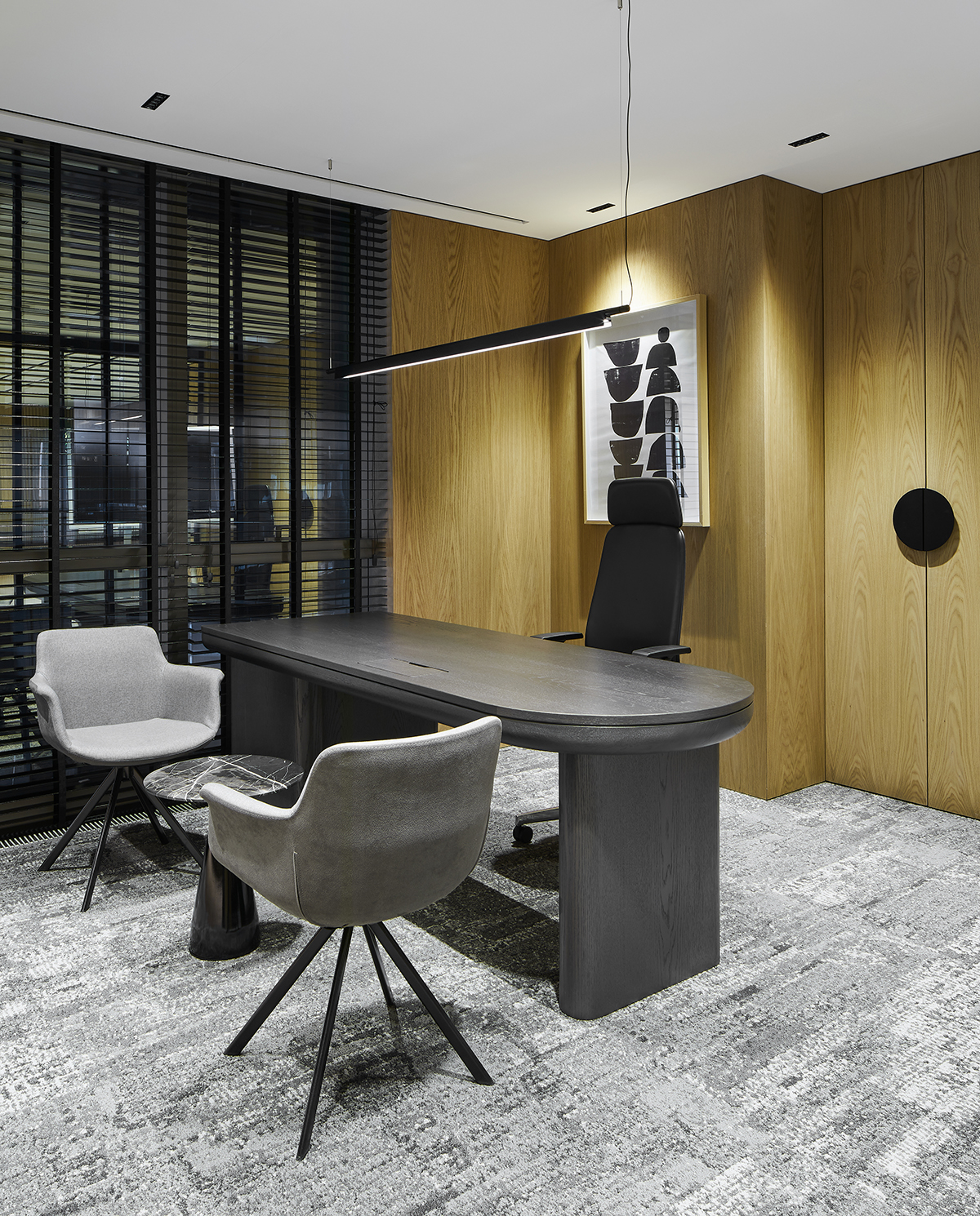 Departing from conventional office layouts, the project embraces functionality, human-scale design, and a strong sense of atmosphere, resulting in a workplace that feels inviting, expressive, and thoughtfully curated.