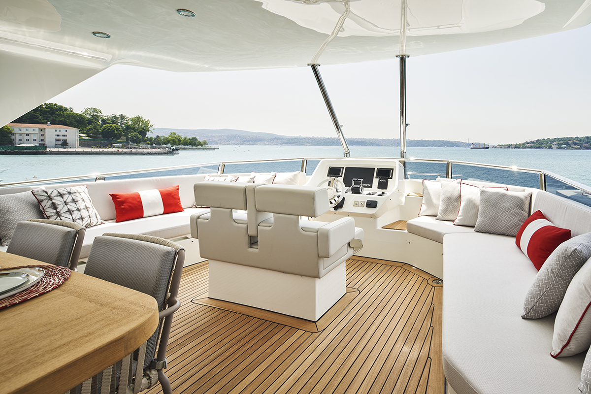 The Numarine 26XP offers two guest cabins and two crew cabins within approximately 350 square meters of thoughtfully designed living space.